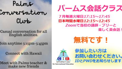 2020年07月14日 インウェブアウト留学センター提携校のHawaii Palms English School(ハワイパームスイングリッシュスクール)からZoomで行う無料!パームス会話クラスと「ハワイの今が感じられ 続きを読む…